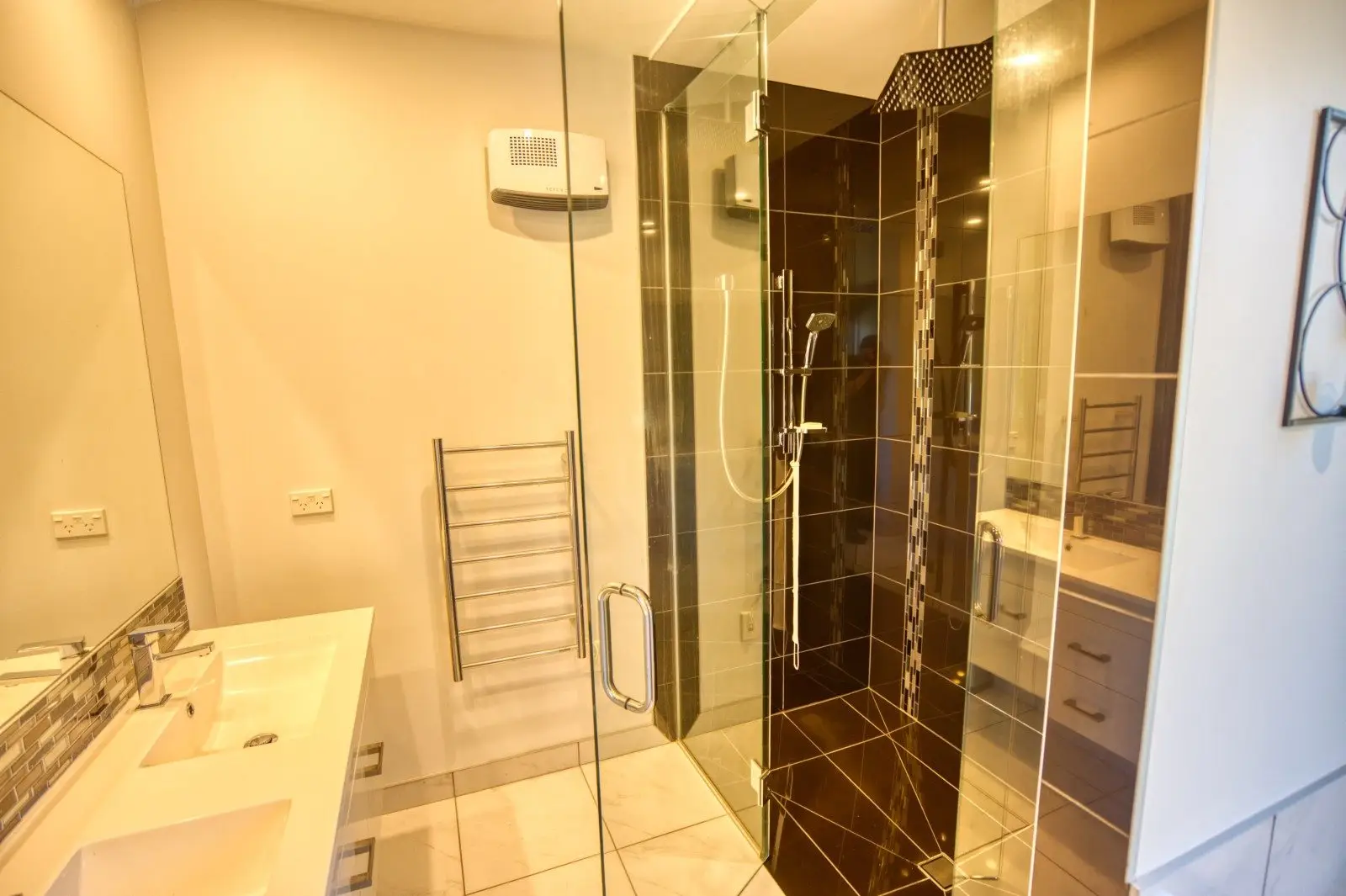 Downstairs, a fully self-contained two-bedroom unit with its own bathroom, living area and separate entrance provides excellent versatility – ideal for extended family, guests, or Airbnb. Internal access leads to the double garage with laundry, and the home is fitted with heat pumps and double glazing for year-round comfort.